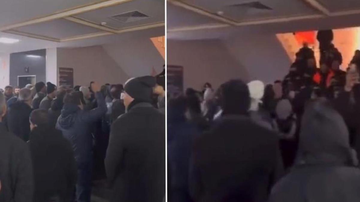 Cep telefonuyla kaydedilen görüntülerde valilik binasına giren kalabalığın merdivenlerde bekleyen valiye yönelik sloganlar attığı anlar yer aldı.