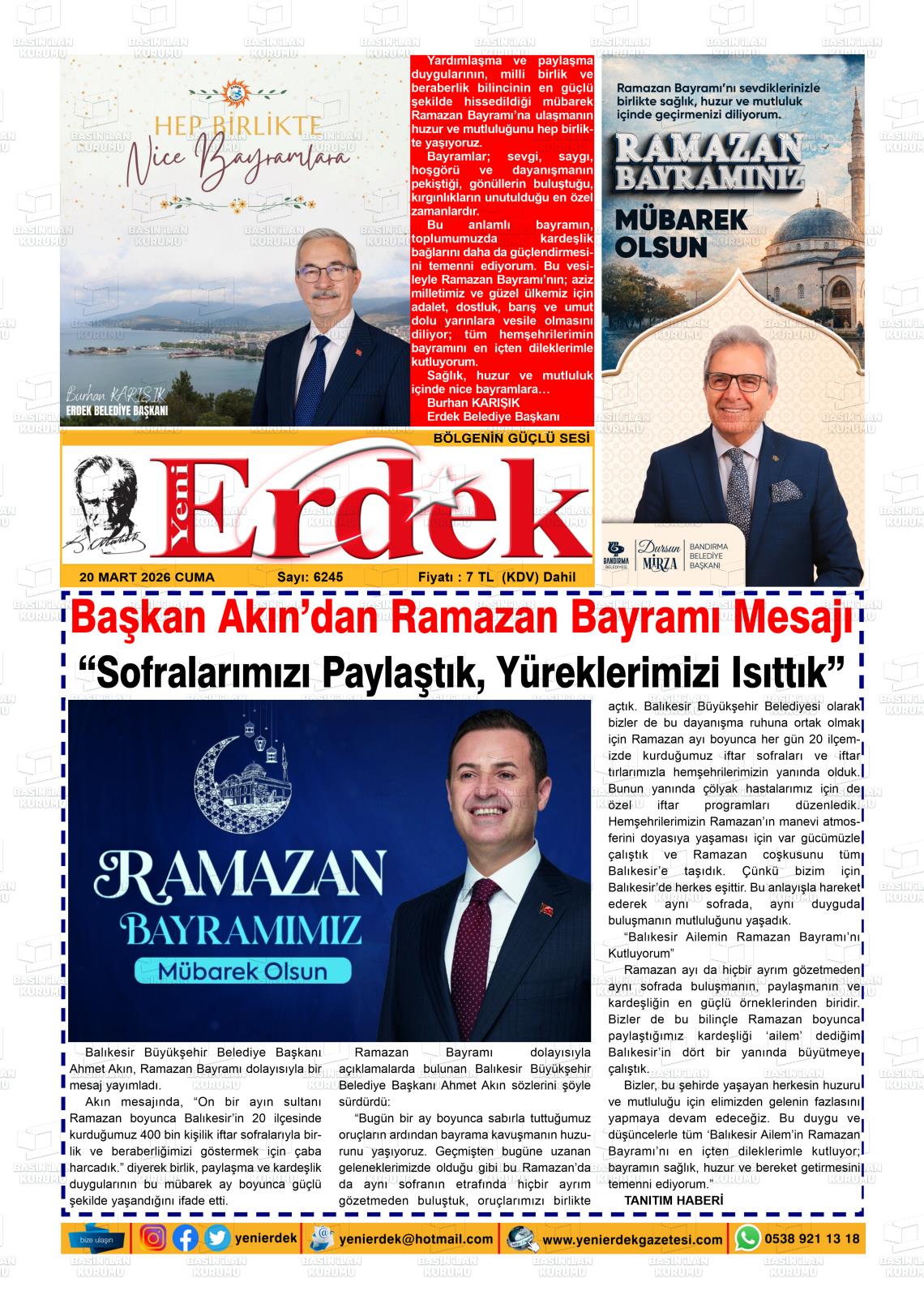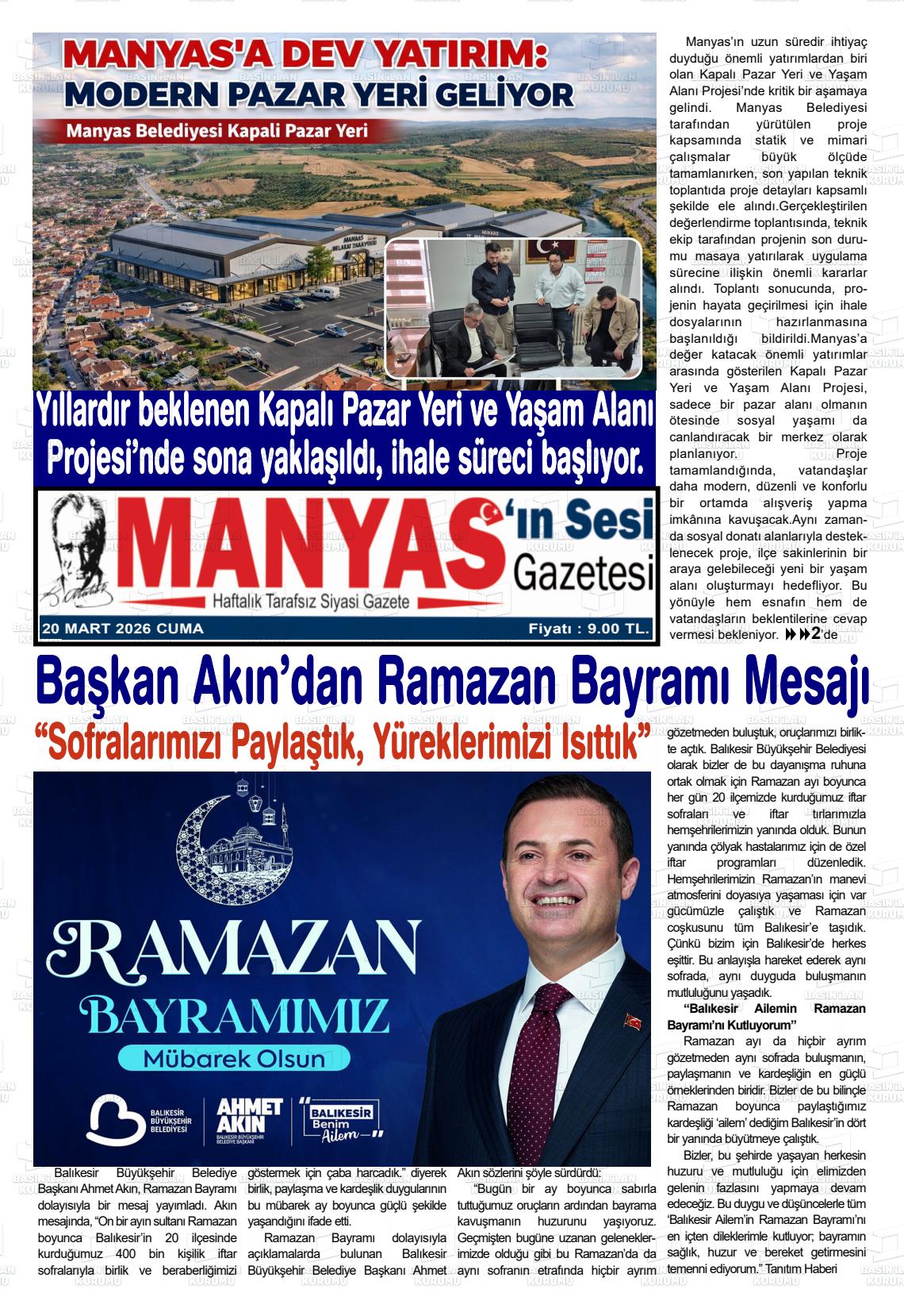 Balıkesİr Yerel Gazeteleri 20 Mart 2026, Cuma Günü Manşeti
