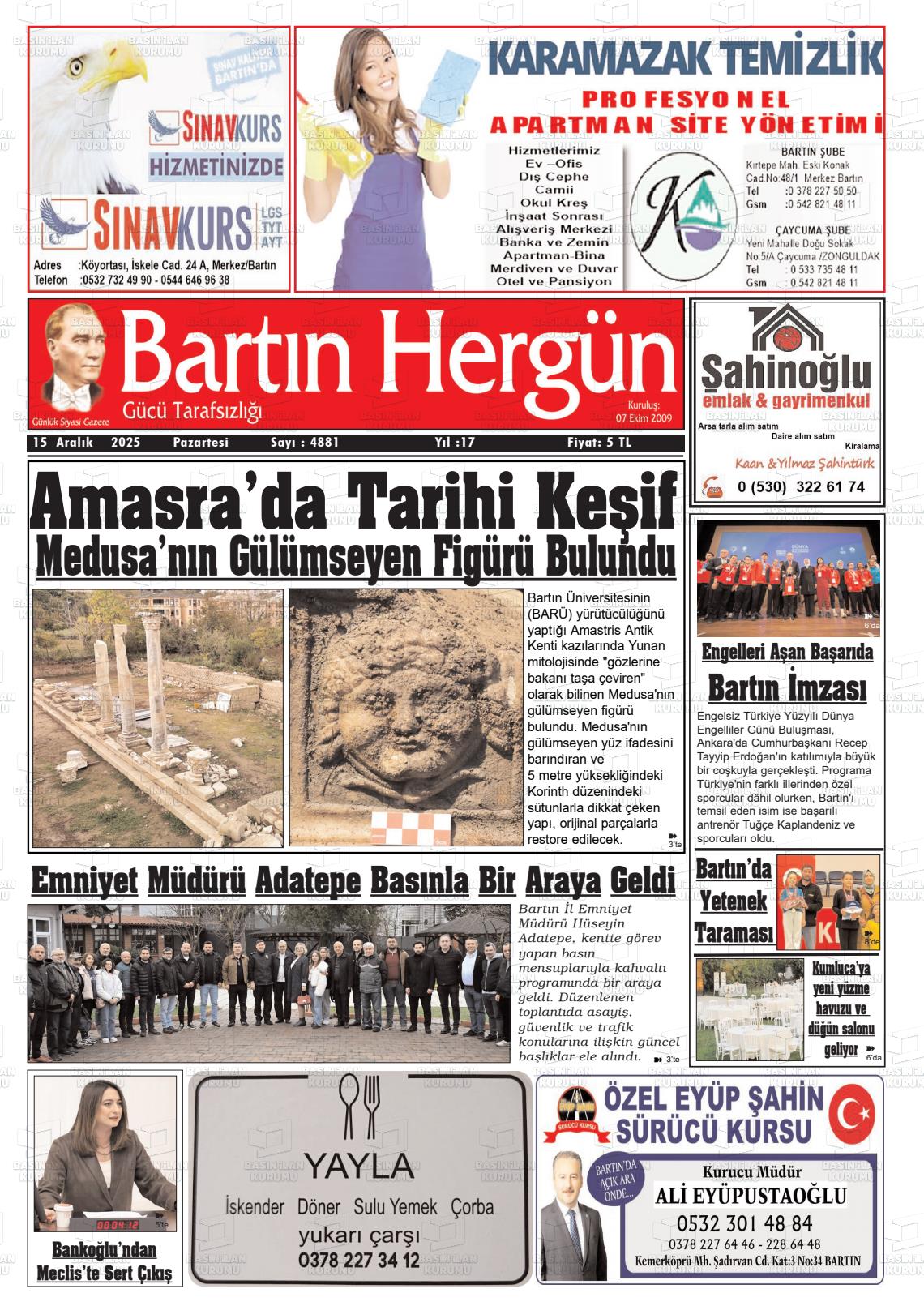 Bartın Yerel Gazeteleri 02 Şubat 2026, Pazartesi Günü Manşeti