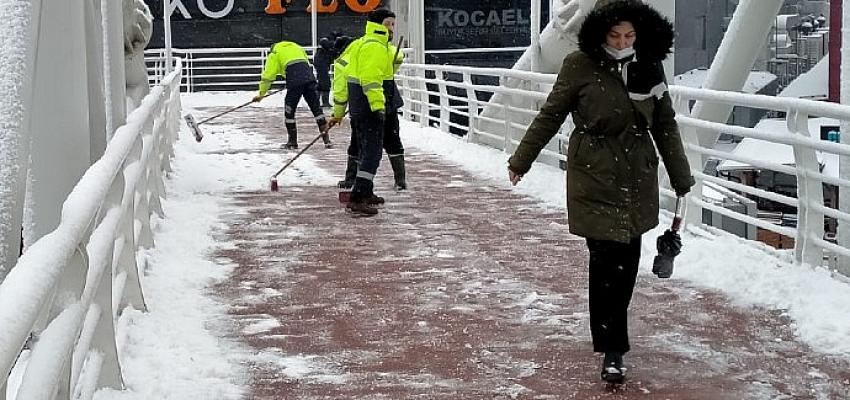 Kocaeli Büyükşehir Belediyesi, bölgemizi tesiri altına alan ağır kar yağışında vatandaşların olumsuz etkilenmemesi için tüm gruplarıyla çalışmaya devam ediyor. Park ve Bahçeler Dairesi Başkanlığı’na bağlı takımlar de bir yandan köprüler ve yaya üst geçitlerinde vatandaşların güvenliği için solüsyon ve paklık çalışmaları yaparken, bir yandan da yolların tuzlanmasında öteki gruplara yardımcı oldu. Ağır kar yağışına karşın Kocaeli genelindeki park ve bahçelerde, yol kenarlarında, otobüs duraklarında paklık işlerine orta vermeyen Park ve Bahçeler grupları, 7/24 çalışmaya devam etti.